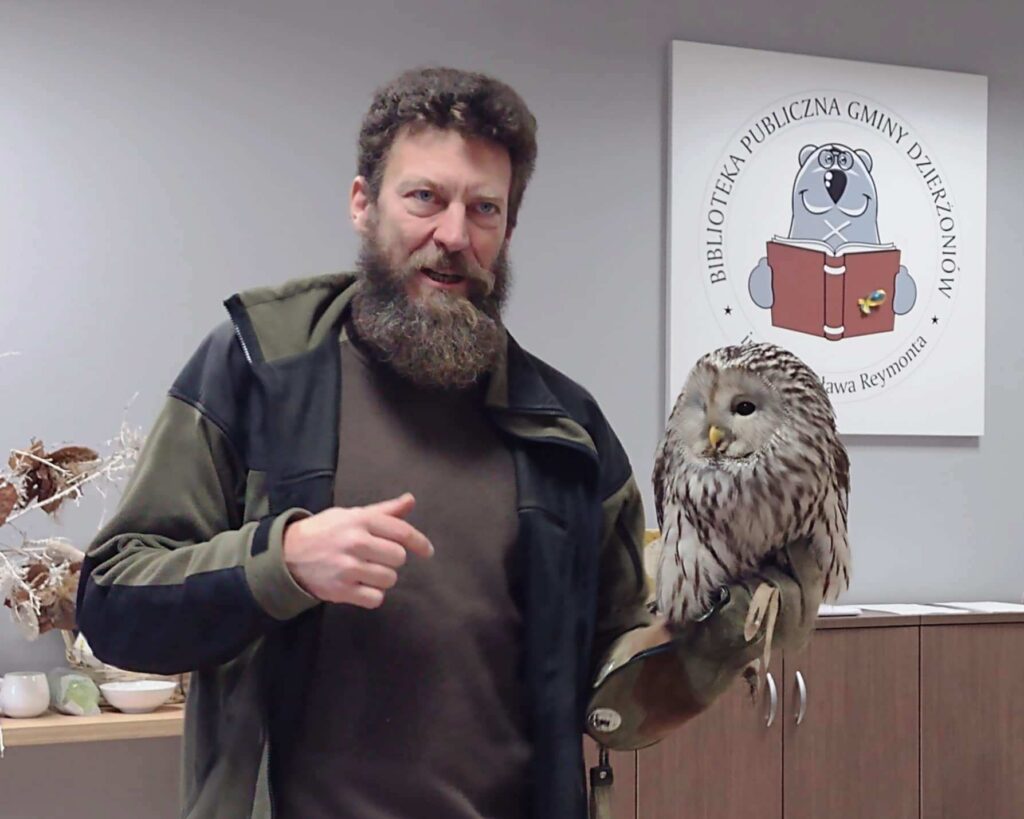 W środę 28 stycznia razem z podopiecznymi Fundacji Pokolorujmy Szarość rozmawialiśmy o lesie, jego mieszkańcach, odgłosach ptaków i naszej w nim obecności. Młodzi badacze przyrody poznali także legendę, autorstwa Janiny Weretki-Piechowiak, o Górach Sowich. To właśnie ten tekst pozwolił nam przenieść się do kolejnej części spotkania, na które zaprosiliśmy niezwykłych gości – prawdziwe sowy! Ich opiekun, Krzysztof Szumski, opowiadał o sowich zwyczajach, obalał mity z nimi związane i sprawił, że świat tych pięknych i fascynujących ptaków stał się nam bliski. Mogliśmy się poczuć częścią przyrody, słuchając wydawanych przez sowy dźwięków i dotykając miękkich piór.