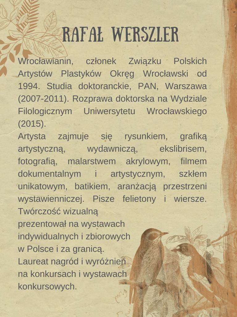 Fotograf skupia się na dokumentowaniu ptasiej różnorodności w przestrzeni Wrocławia, ukazując ich zachowania w parkach i nadodrzańskich terenach, przyciągających różnorodnością żyjących tam gatunków. Zdjęciom towarzyszą krótkie opisy prezentowanych ptaków.