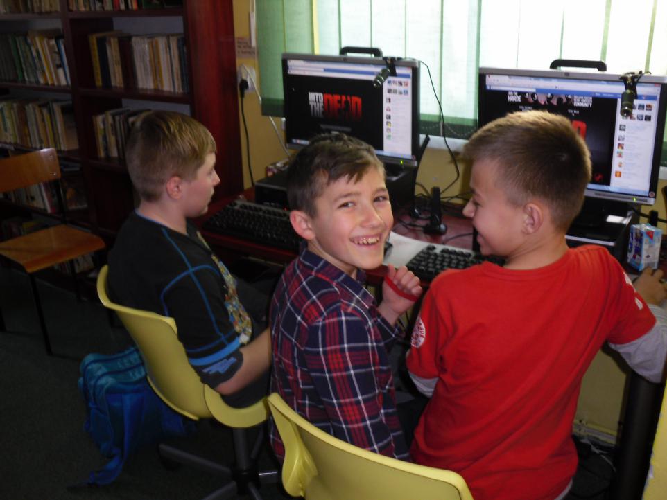 Na przykład 30 stycznia w piątek z Biblioteki wyruszyła wycieczka na Wyspę Koni do Państwa Małgorzaty i Piotra Zabuskich. Tam przeszliśmy szkolenie jak należy przygotować konia do przejażdżki oraz jak zachować się podczas jazdy na koniu.Następnie pani Małgorzata organizowała zabawy ruchowe w plenerze, a Pan Jarosław Gębski nadzorował jazdę konną.
