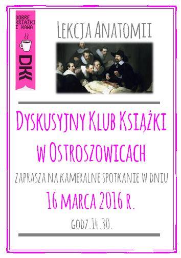 Książka ,,Lekcja anatomii”, autorstwa Niny Siegal zachęciła uczestników do burzliwej dyskusji oraz subiektywnej oceny. Warto było tę książkę poznać, gdyż jest to świetna powieść odkrywająca tajemnicę powstania największego dzieła Rembrandta z 1632 roku. Chodzi o obraz namalowany olejami na płótnie o rozmiarach 169,5 × 216,5 cm, znajdujący się obecnie w Muzeum Mauritshuis.
