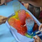 A było tak… Kilka osób wyraziło chęć pomocy przy przygotowaniu planowanego spotkania. Pan Ryszard wykonał dekoracje przedstawiające laboratorium, pan z apteki pożyczył nam naczynia laboratoryjne i wagę, pani Elżbieta przygotowała wszystko do wykonania eksperymentów, pani Izabela przeobraziła się w Marię Skłodowską – Curie, a pan Paweł zajął się dokumentacją zdjęciową.