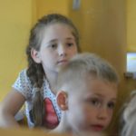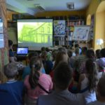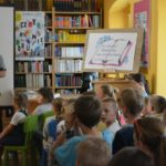 Od poezji przeszliśmy do najnowszej technologii i z tabletami w dłoniach odkrywaliśmy aplikacje 4D. Z kartek wyłaniały się tuż przed naszymi oczami m.in. marsjańskie pojazdy i dokładne fragmenty ciała ludzkiego. Spacerujące po bibliotece dinozaury robiły wrażenie na wszystkich i niektórym udało się zrobić sobie zdjęcie z wybranym gatunkiem. Najciekawszym zadaniem okazała się możliwość stworzenia własnego obrazka 4D. Kolorowe rybki, aligatory i ptaki w niepowtarzalnych i autorskich odsłonach zapełniły czytelnię. Wszyscy uczestnicy zasłużyli na lodowy poczęstunek z posypką poruszającą kubki smakowe i niespodziankę, którą była projekcja filmu „Biuro detektywistyczne Lassego i Mai: Stella Nostra” (reż. P. Klange i W. Soderlund). Najnowsza ekranizacja jednego z tomów znanej serii książek dla dzieci była doskonała okazja do odpoczynku.