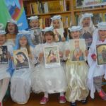 ,,Zawsze staram się, żeby postacie miały imię i nazwisko„. Celna wskazówka mówiąca o tym że ,,o narodzie należy pisać przez pojedyncze losy!” utkwiła młodym słuchaczom w pamięci. Młodzież z uwagą i zaangażowaniem podeszła do literackiego spotkania w bibliotece. Dzięki Paczce Literackiej otrzymała w prezencie nie tylko świetną książkę , ale przede wszystkim dowiedziała się, że napisanie dobrego reportażu poprzedza zdobywanie gruntownej wiedzy literackiej, spryt pisarza, obiektywizm, empatia, umiejętność analizowania rzeczywistości. Swoje fascynacje reportażem i zawodem reportera uczestnicy przenieśli na wizualizację cech dobrego reportera. Wzorując się oczywiście na mistrzyni Hannie Krall.