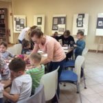 Dzięki międzynarodowej wystawie ekslibrisów, która zawitała do Biblioteki w Mościsku, zorganizowane zostały warsztaty projektowania własnych znaków. Pomysłowe prace, pełne szczegółów i oczywiście podpisane, zostały zeskanowane i wydrukowane. Ich twórcy mogą je wykorzystać w swoich biblioteczkach domowych. 25 listopada upłynął w tonacji czarno-białej. Nawet małe rączki dały sobie radę z tworzeniem kontrastowych obrazków.