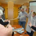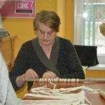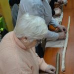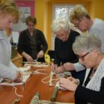 Nasza Grupa Twórcza chętnie podjęła wyzwanie wykonania tej trudnej pracy. Pomysłodawczyni projektu pani Emilia Wojdyło fachowo udzielała instrukcji jak wykonać sznurkowe sploty i węzły. Praca wymagała ogromnego skupienia i całkowitego zaangażowania. Niezwykle wolno wyłaniały się fantazyjne wzory z węzłów płaskich i splotu żeberkowego. Jednak na końcowe efekty trzeba jeszcze poczekać.