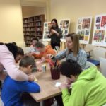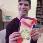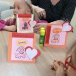 Skoro potwory z książki zyskały aprobatę naszych gości, nic nie stało na przeszkodzie aby wykonać walentynkowe niespodzianki dla najbliższych. Powstały więc „potwornie słodkie” kartki z serduszkami i potworami. Podczas wizyty był też oczywiście czas na wymianę książek, czasopism oraz zapisy nowych czytelników.