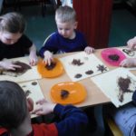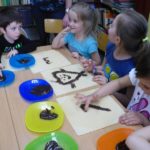 W tym roku postanowiliśmy czekoladę potraktować jak kredki. Młodzi czytelnicy w Mościsku, po przeanalizowaniu składu na opakowaniach czekolad czekających na nich w czytelni, bez zwłoki zabrali się do twórczej pracy. Na kartkach powstały krajobrazy z najbliższej okolicy w ciepłych odcieniach brązu. Najciekawsze zawisną w czytelni książek dla dzieci, pachnąc w magnetyczny i przyciągający sposób. Czekoladowe kredki miały dodatkowy atut – można je było bez wyrzutów sumienia podgryzać, oblizując palce :).