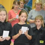 Zebrana w bibliotece młoda brać strażacka oraz dostojni dorośli z namaszczeniem śpiewali o swojej Gminie.