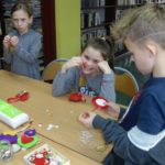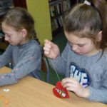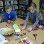 Przed radosnymi świętami Bożego Narodzenia spotkaliśmy się z uczniami klasy III, aby porozmawiać o naszej kulturze, tradycjach, które są bogate i jedyne w swoim rodzaju. Wychowawca klasy pani Joanna Mrzygłód, opowiadała o zwyczajach i przygotowaniach do wigilii. Dzieci również mówiły o swoich zwyczajach panujących w ich domach. Warto wiedzieć, że w naszej tradycji jabłko, zawieszane na gałązkach choinki, symbolizowało zdrowie i urodę. Orzech miał nieść dobrobyt i siłę. Cukierki i pierniczki gwarantowały szczęście dla domu. W ramach spotkań –Świąteczne Impresje Biblioteczne – dzieci wykonały z filcu kolorowe serduszka, przyozdabiając je guzikami, gwiazdkami, kokardkami. Na kolorowych wstążkach zawisły również pachnące pierniczki, a śpiewane kolędy przybliżyły nam świąteczny czas.