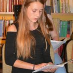 Nowelę Elizy Orzeszkowej Dobra Pani z ogromnym zaangażowaniem odczytała Dyrektor ZSP Pani Urszula Zając. Pani Bożena Nowak z aktorskim zacięciem wcieliła się w rolę tytułowej bohaterki, ironicznie nazwanej dobrą w towarzystwie ulubionego pupilka zwanego w tekście Elfem. Nowelę Sachem odczytały uczennice klasy ósmej Magdalena Połcik oraz Wiktoria Gajda.