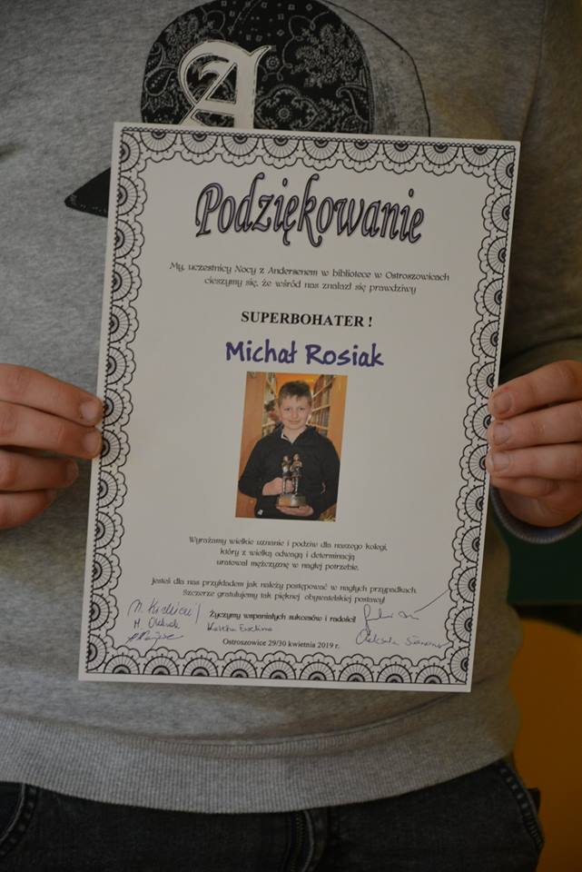 Podsumowując swoją baśń Andersen napisał: Widzicie, to była prawdziwa historia! My też mamy swoje zakończenie tej cudownej Nocy z Andersenem: Widzicie, to była prawdziwa historia! Z prawdziwym bohaterem Michałem!