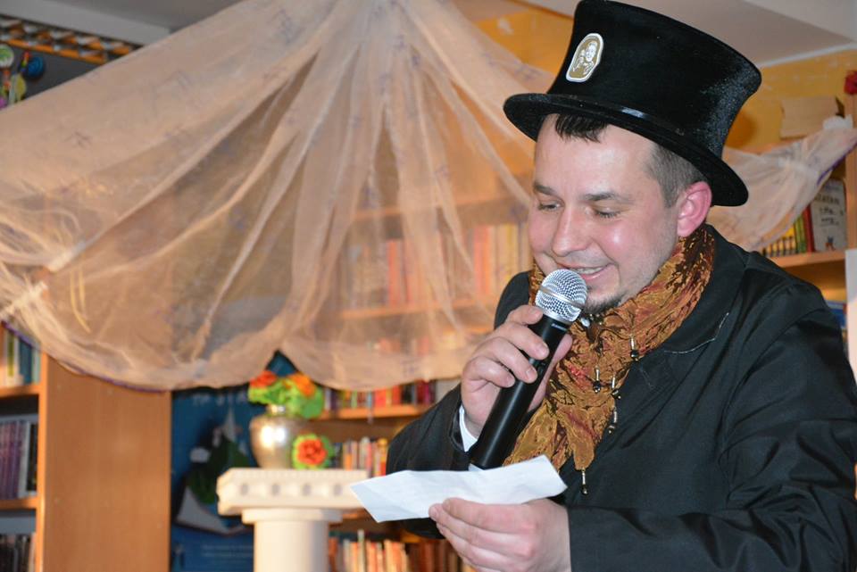 Jeden z nich – Sławek Oleksak, czytał tekst w języku czeskim, natomiast drugi -Erwin Piwowarczyk tłumaczył baśń po polsku. Tajemnicza aranżacja biblioteki wprowadziła wszystkich w prawdziwie baśniową przestrzeń. Łoże dla księżniczki, bardzo wygodne lecz z jednym ziarenkiem groszku pod pościelą, pozwoliło na odegranie kluczowej scenki z tej pięknej baśni. Nazajutrz po nieprzespanej nocy księżniczka Natalia obudziła się narzekając na bóle pleców. Jedno małe ziarenko groszku pozwoliło księciu na wybranie prawdziwej księżniczki, a na pamiątkę tego wyboru zostało oddane do muzeum.