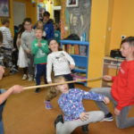 Wtedy zaczęło się: malowanie Grochostworków farbami i rozdmuchiwanie ich na brystolu, świetna zabawa w kalambury,w dyrygenta, sztafeta sprawnościowa z pęsetą trzymającą groszek, ekstremalny taniec pod kijem, zawody w jak najdłuższym wymawianiu wyrazów na czas oraz niesamowicie śmieszna zabawa w Wielkie Gacie!