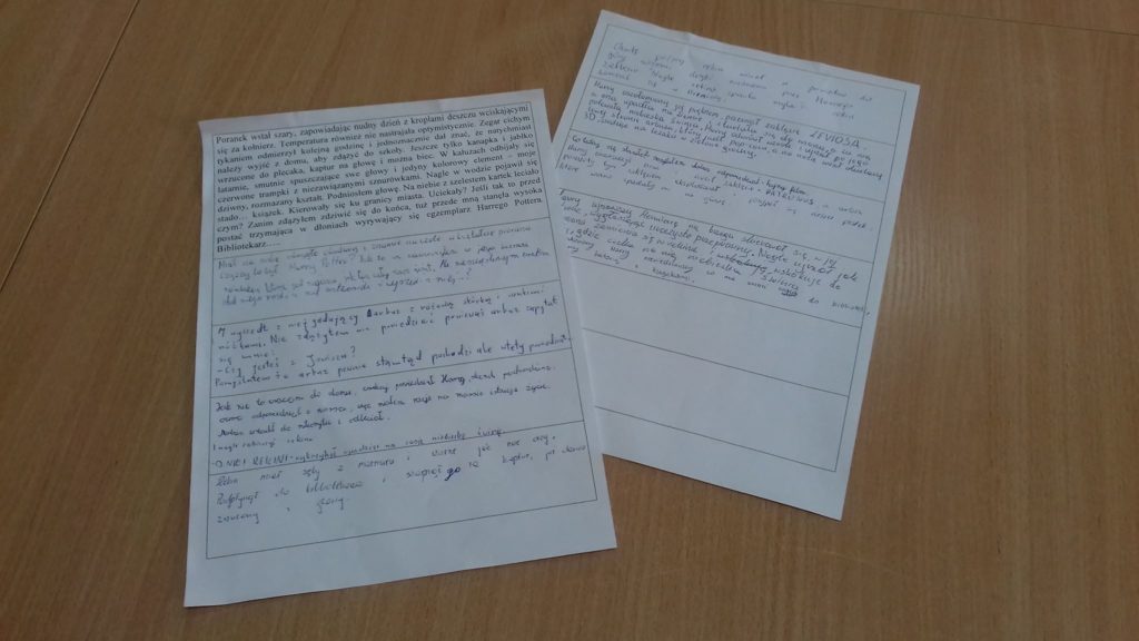 Poranek wstał szary, zapowiadając nudny dzień z kroplami deszczu wciskającymi się za kołnierz. Temperatura również nie nastrajała optymistycznie. Zegar cichym tykaniem odmierzył kolejną godzinę i jednoznacznie dał znać, że natychmiast należy wyjść z domu, aby zdążyć do szkoły. Jeszcze tylko kanapka i jabłko wrzucone do plecaka, kaptur na głowę i można biec. W kałużach odbijały się latarnie, smutnie spuszczające swe głowy i jedyny kolorowy element – moje czerwone trampki z niezawiązanymi sznurówkami. Nagle w wodzie pojawił się dziwny, rozmazany kształt. Podniosłem głowę. Na niebie z szelestem kartek leciało stado… książek. Kierowały się ku granicy miasta. Uciekały? Jeśli tak to przed czym? Zanim zdążyłem zdziwić się do końca, tuż przede mną stanęła wysoka postać trzymająca w dłoniach wyrywający się egzemplarz Harrego Pottera.