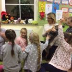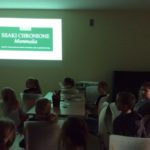 Aby uspokoić nieco nasze emocje chwyciliśmy drobne przegryzki i zasiedliśmy pod ekranem. Udostępniony przez Centrum Edukacji Obywatelskiej film „Ptyś i Bill” spełnił nasze oczekiwania i przy okazji wpisał się doskonale w tegoroczne hasło Nocy Bibliotek – „Znajdźmy wspólny język”. My tej nocy porozmawialiśmy od serca z tymi co skaczą, fruwają, szczekają i miauczą, mając pod rękami szeleszczące karty książek i miękkie futra.