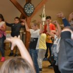 Dynamiczne zabawy integracyjne z Grupą Animacyjną PESTKA, ekscytujący bieg w kolorowych chmurach, nauka zręczności w tańcu ulicznym prowadzonym przez Julię Stawską, pieczone kiełbaski na ognisku, zabawy słowne a także słodki deser będący uwieńczeniem naszego cudownego potkania! Najbardziej rozkręciliśmy się podczas szalonych zabaw z druhem Sławkiem Oleksakiem, który trzymał tempo podczas miarowego czytania Lokomotywy Juliana Tuwima, aż po taniec pod drążkiem na… deskorolce! Niebywały zachwyt wzbudziła Julia Stawska. Ta wspaniała dziewczyna brylująca na mistrzostwach świata w krumpingu oczarowała młodzież swoim tanecznym kunsztem. To prawdziwy brylant!