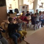 Spotkanie z Moniką Sawicką Kacprzak było także okazją do rozmowy o pracy pisarza. Autorka twierdzi, że „pisanie książki podobne jest do lepienia bałwana”. Śniegu za oknem jak na lekarstwo i dzieci rozmarzonym wzrokiem wpatrywały się w śnieżny slajd. Porównanie na pewno przypadło im do gustu. Na zakończenie wizyt przedszkolaki z Uciechowa podarowały pisarce własnoręcznie wykonaną laurkę dziękując za jej wizytę i ciekawie spędzony czas.