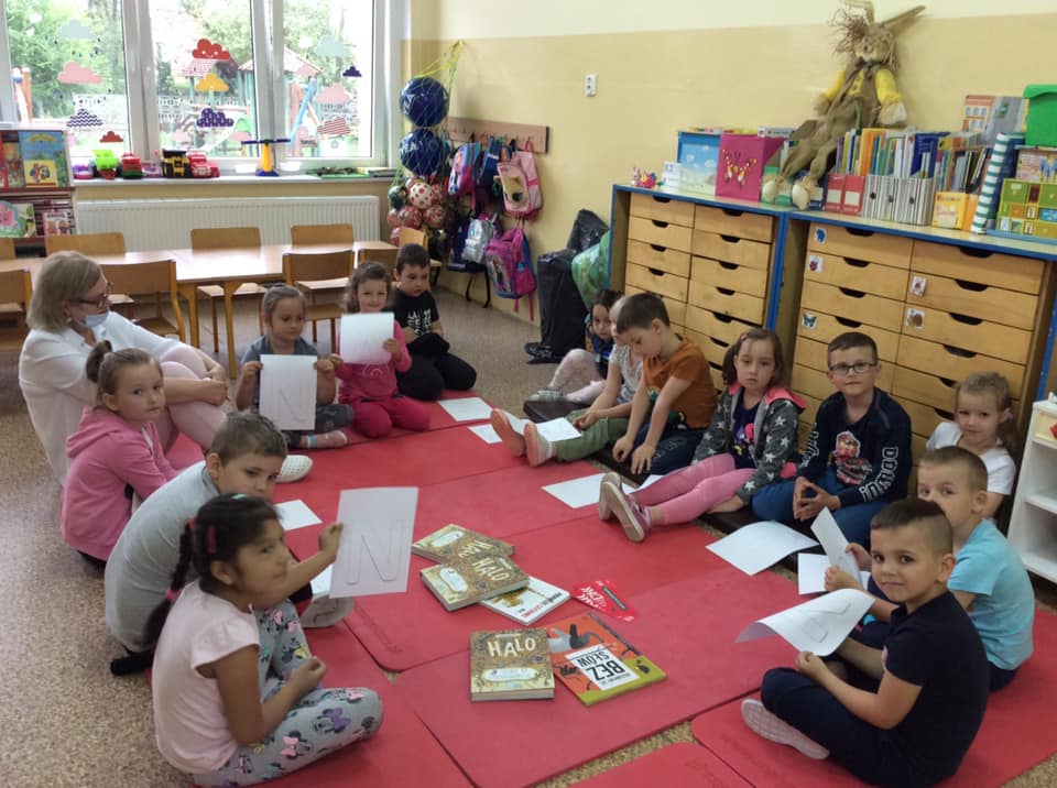 Książka Piotra Sochy szczególnie zachwyciła dzieci treścią i bogatą formą graficzną. Zabawy ruchowe, ćwiczenia emisyjne i swobodne wypowiedzi sprawiły, że spotkanie upłynęło w cudownej atmosferze.