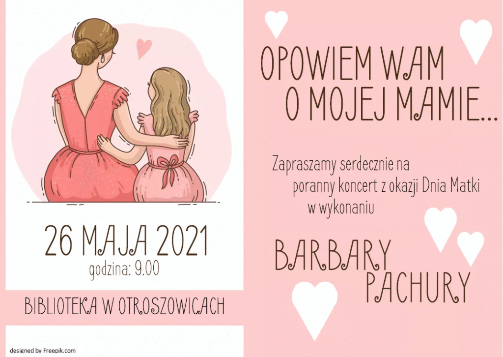 Poranny koncert Barbary Pachury, wspólne śpiewy, rozmowy o ukochanych mamach, przeglądanie rodzinnych fotografii, wystawa monideł, wspaniały nastrój i słodki poczęstunek z okazji Dnia Matki to zapowiedź udanego dnia i świętowania w rodzinnym gronie.