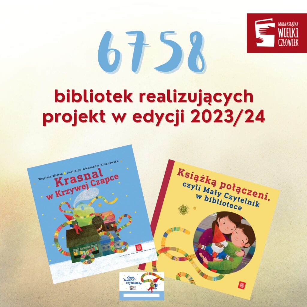 Znajdziecie w niej książkę „Krasnal w Krzywej Czapce”, broszurę Książką połączeni, czyli Mały Czytelnik w bibliotece oraz Kartę Małego Czytelnika, na której Twoje dziecko będzie zbierało naklejki– jedną za każdą wizytę zakończoną wypożyczeniem książki z księgozbioru dziecięcego.