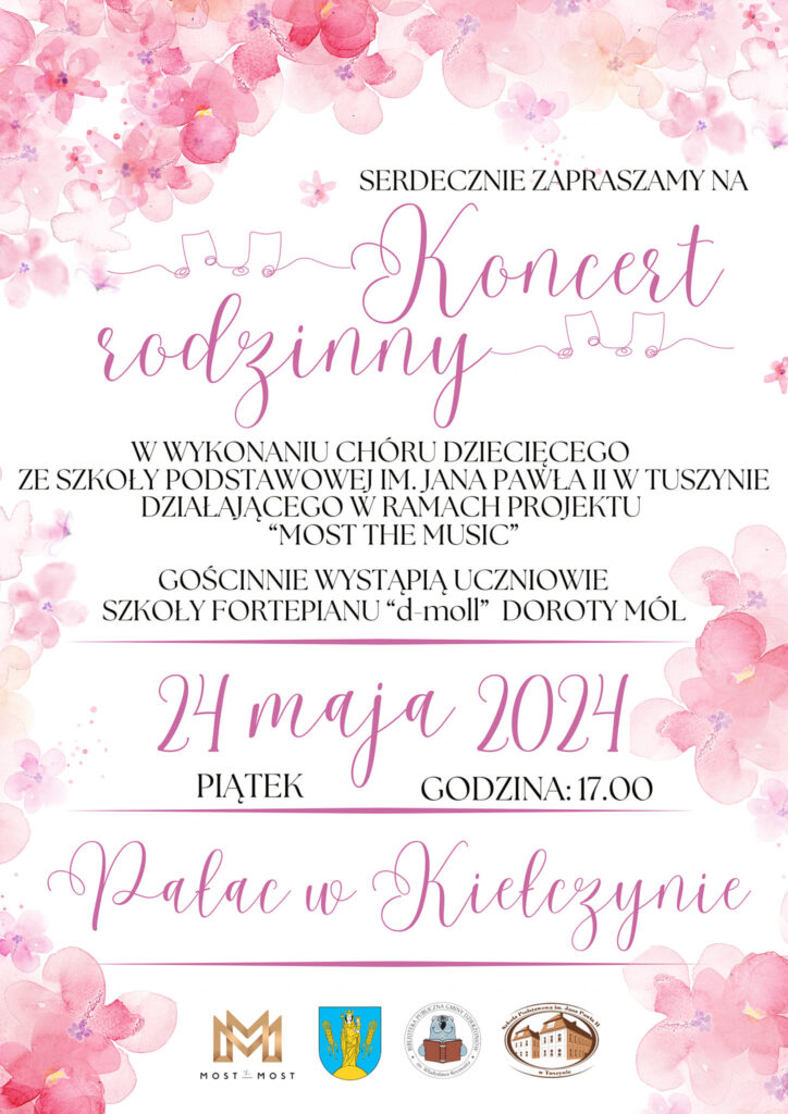 Serdecznie zapraszamy do pałacu w Kiełczynie na koncert rodzinny w wykonaniu Chóru Dziecięcego ze Szkoły Podstawowej im. Jana Pawła II w Tuszynie. Wydarzenie będzie jednocześnie podsumowaniem II etapu projektu „Most the Music” realizowanego przez Bibliotekę Publiczną Gminy Dzierżoniów z fundacją „Most the Most”. W koncercie gościnnie udział wezmą uczniowie Szkoły Fortepianu „d-moll” Doroty Mól. Już w najbliższy piątek, 24 maja 2024 r. o godz. 17.00
