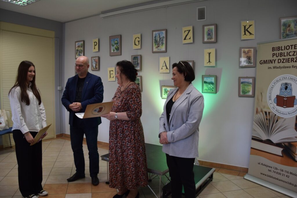 Mamy nadzieję, że poezja i proza, która towarzyszyła młodzieży podczas gminnego etapu XXVIIII Dolnośląskiego Konkursu Recytatorskiego „Pegazik” pojawiła się na ich drodze w odpowiedniej chwili. Książki chodzą swoimi drogami jak koty i zdarza się, że pojawiają się na naszym szlaku dopiero we właściwym momencie – twierdzi Małgorzata Musierowicz. Niech na tym szlaku literatura będzie jak jasne gwiazdy, prowadzące bezpieczną i ciekawą drogą do celu.