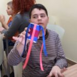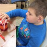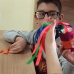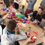 28 lutego podopieczni Fundacji Pokolorujmy Szarość odwiedzili Bibliotekę w Mościsku, gdzie czekały na nich zajęcia literackie, muzyczne i plastyczne. Zajrzeliśmy do książki „Bromba i inni” Macieja Wojtyszki, gdzie czekał na nas Glisando, stwór mieszkający w muzyce. Nie zawsze go widać, ale o jego obecności świadczą dźwięki wydobywające się z instrumentu. Postanowiliśmy poszukać go w perkusji. Lekcja okazała się sporym powodem do radości i wstępem do własnoręcznego wykonania drobnych instrumentów muzycznych. W tych kolorowych, małych grzechotkach Glisando na pewno chętnie zamieszkał i wysłuchał kolejnego fragmentu książki. Podczas zajęć towarzyszyła nam również muzyka ilustrująca różne gatunki muzyczne a dzięki aplikacji Orkiestrownik poznaliśmy jakie tajemnice kryje orkiestra symfoniczna. Posłuchaliśmy kilku instrumentów, odszukując je na rozbudowanej mapie wirtualnej orkiestry i biorąc do ręki batuty z kredek.
