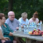 6 września Biblioteka w Mościsku przyłączyła się do akcji Narodowego Czytania „Trylogii” Henryka Sienkiewicza, pod patronatem Prezydenta RP Bronisława Komorowskiego. Razem z Zespołem Szkolno-Przedszkolnym oraz Stowarzyszeniem „Przystań Mościsko” urządziliśmy naszą przenośną czytelnię nad stawami w Mościsku. W pięknej scenerii, pokrzepieni zarówno słowem jak i poczęstunkiem, zebrani uczestnicy czytali i słuchali fragmentów „Potopu”. Z każdą chwilą przybywało chętnych, którzy nie bacząc na roje krwiożerczych komarów oraz kłopoty z nieco opornym językiem, delektowali się wspólna lekturą. Dopiero po dłuższej chwili zauważyliśmy, że również i nam grozi mały potop-szybkimi krokami nad naszą przenośną czytelnię zbliżyła się bowiem burza. Deszcz i grzmoty zmusiły nas do odwrotu ale „nic to”, jak mawiał Mały Rycerz – za rok kolejna odsłona Narodowego Czytania. Do zobaczenia!